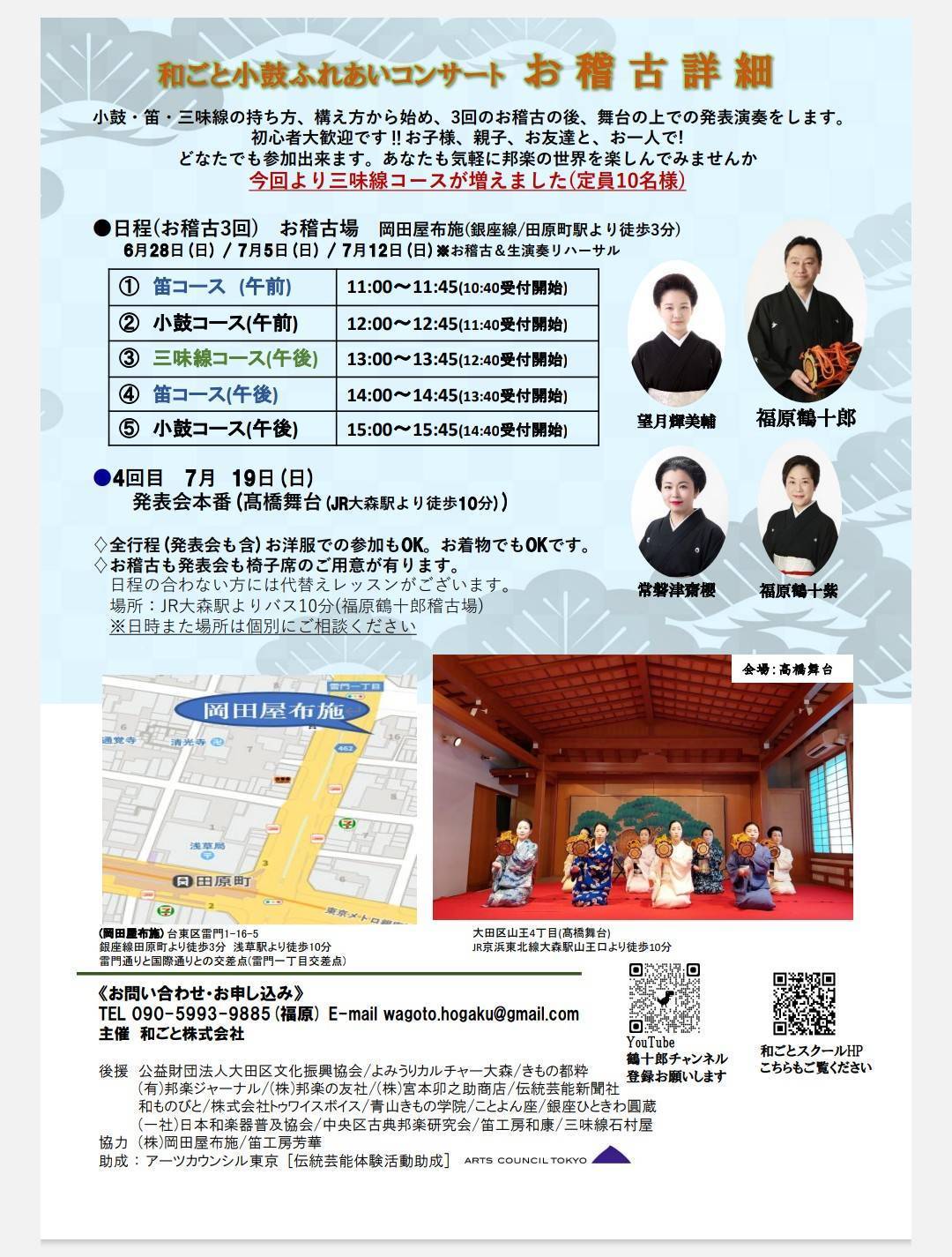 3回のお稽古で素敵な能舞台での演奏が出来ます。