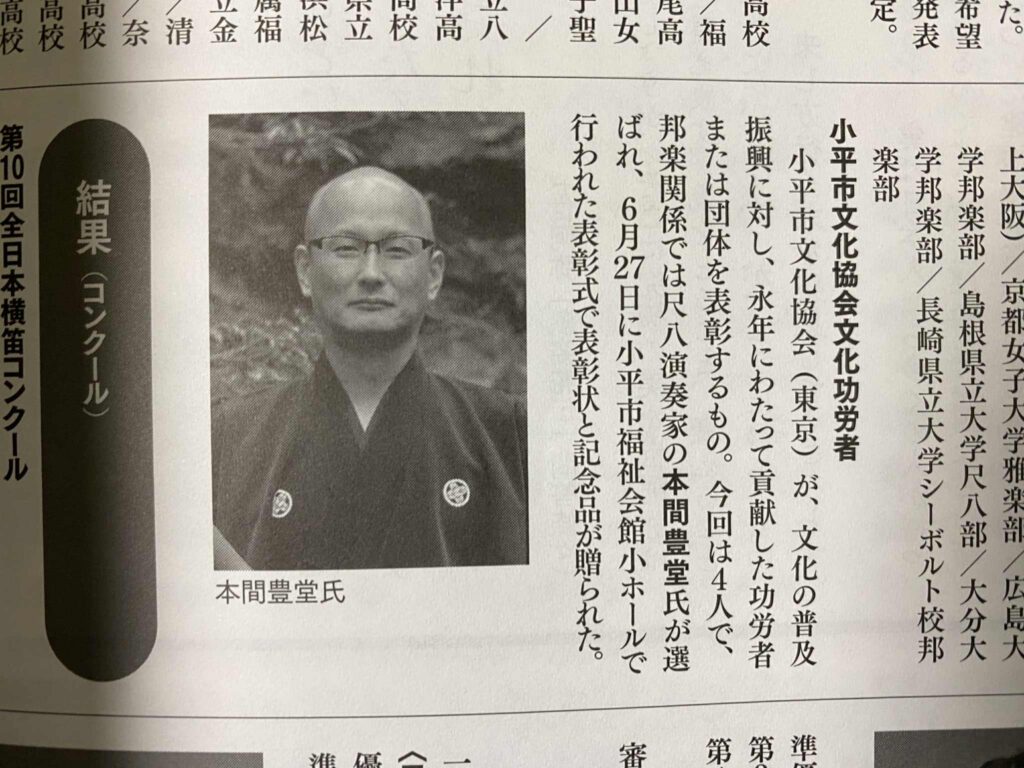 当協会は、本間氏の受賞を心よりお祝い申し上げるとともに、今後も邦楽の魅力を広く伝えるためのさらなるご活躍を期待いたしております。